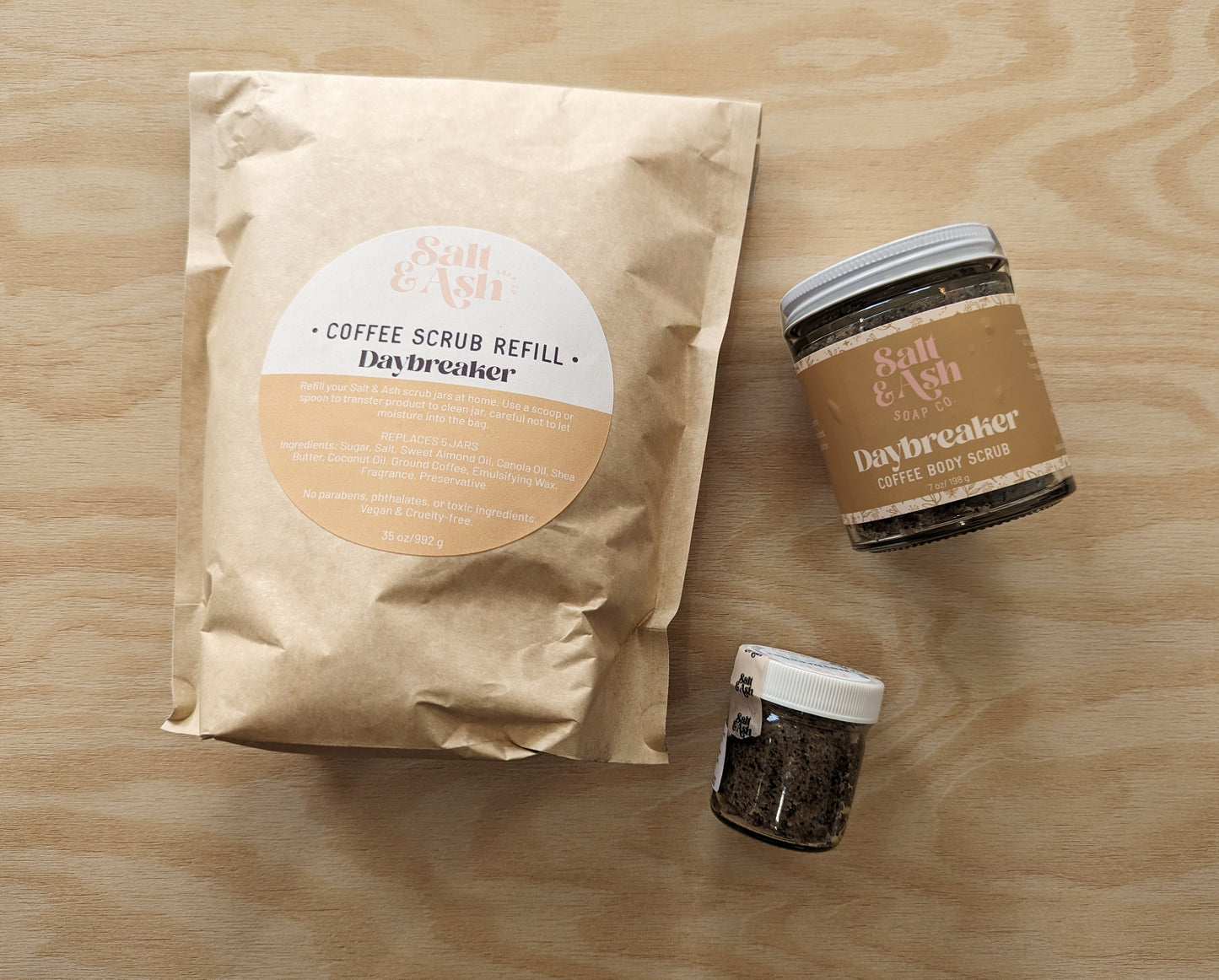 We've been making bath & body products professionally under the brand name Salt & Ash Soap Co. since 2021 (and for fun way, way before that!). We use all natural oils and butters, sustainable ingredients, and the best scents in the bath & body realm. All of our products are nontoxic, phthalate and paraben free, and we don't use palm oil (more on that here). We use all of the products we make (tested only on friends and family) and can say with confidence that using Salt & Ash products will make your skin soft, clean, and beautifully scented!